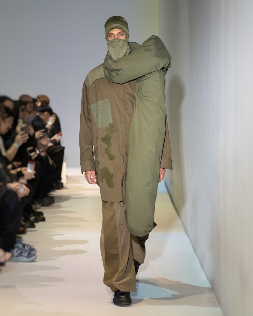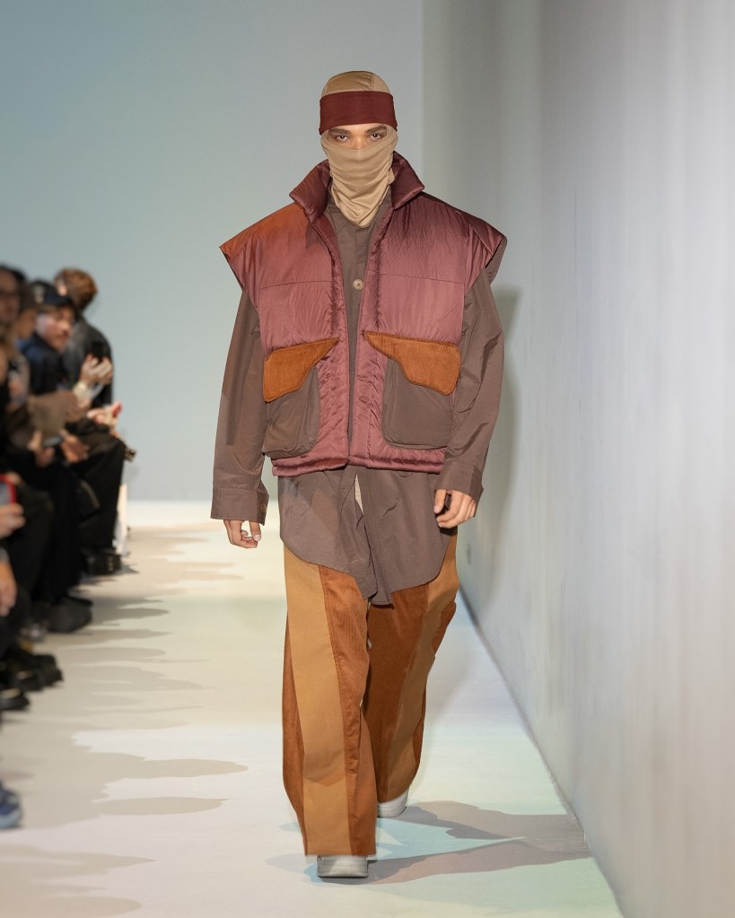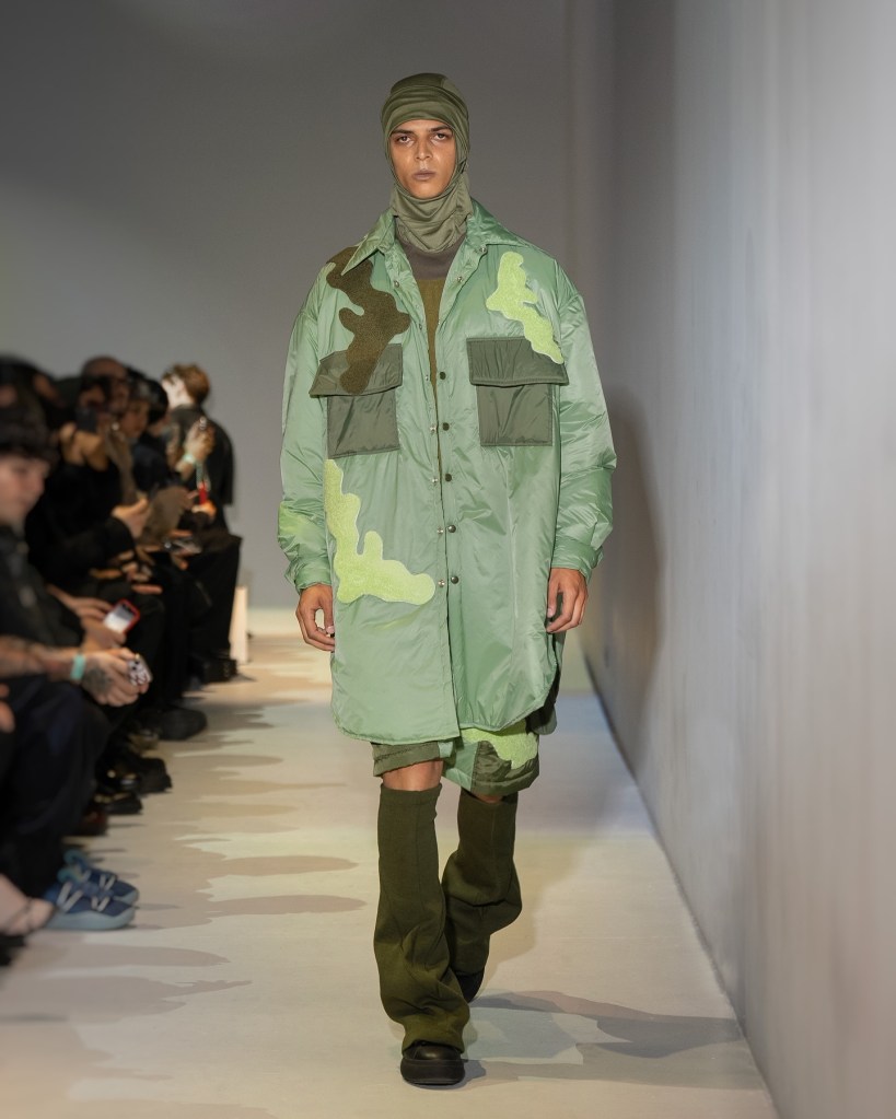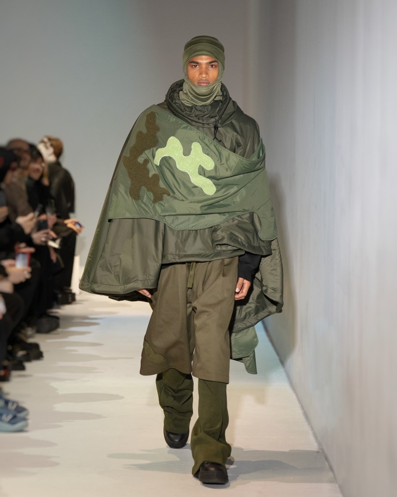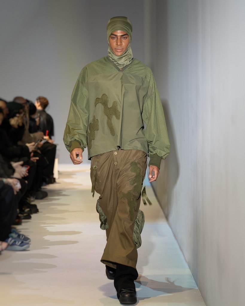 En la colección otoño-invierno 2025, presentada para la versión de Volvo Fashion Week, el diseñador propuso una estética que ha llevado a lo largo de su trayectoria en streetwear, piezas masculinas, en capas, con camuflaje, guiños al Y2K y con superposiciones en capas.