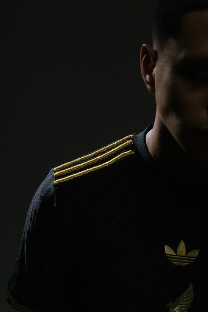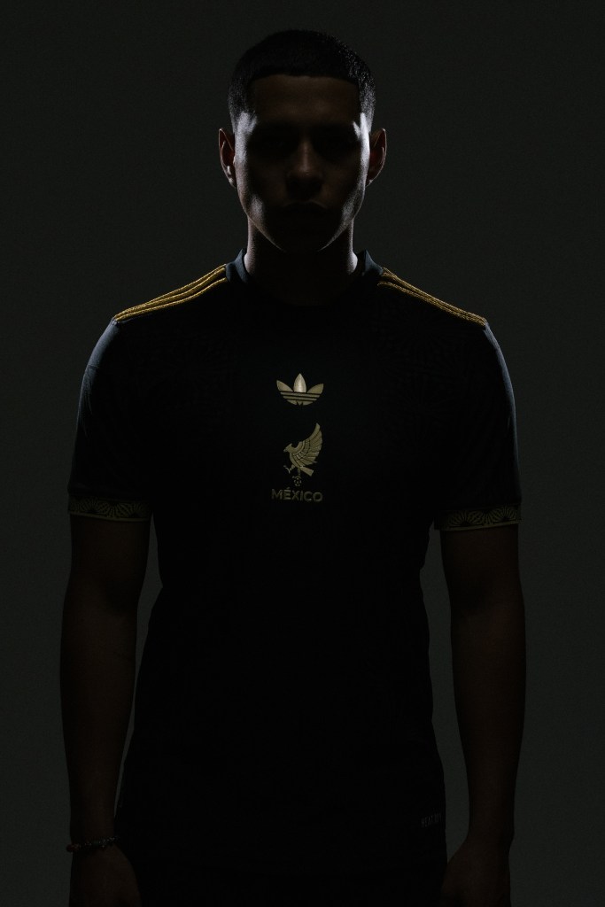 El jersey, que forma parte de la colección México de Oro, es una intrigante combinación de negro profundo y brillante dorado que resaltan el trifolio de adidas y el logo de la Selección Nacional, reflejando sofisticación, estilo y majestuosidad. Las talentosas diseñadoras mexicanas Julia y Renata honran la riqueza cultural de México y el espíritu indomable del fútbol mexicano con una versión elevada del jersey.