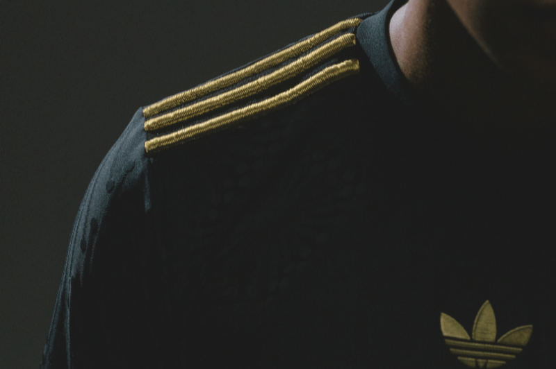 Las tres icónicas franjas de adidas ubicadas en los hombros, bordadas completamente a mano en hilo de oro, hacen alusión a la tradicional charrería mexicana y las prendas litúrgicas, representando el orgullo y la trascendencia de ser mexicano. Cada puntada enaltece la devoción, el liderazgo y fortaleza de los jugadores, quienes inspiran a millones de aficionados dentro y fuera de la cancha.
