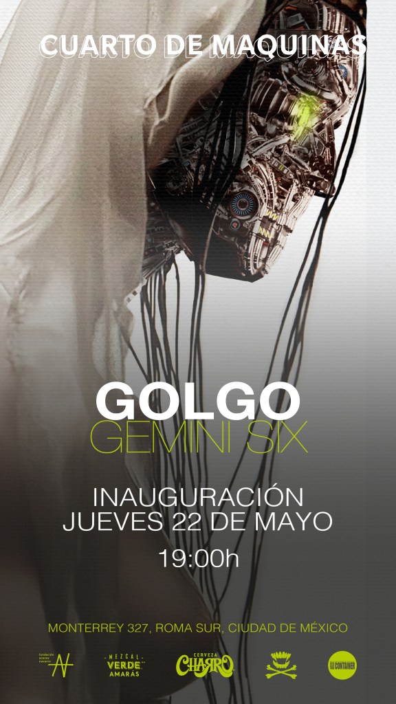 Gemini Six estará abierta al público del 22 de mayo, 2025 hasta junio, 2025 en El Cuarto de Máquinas, en su nueva locación ubicada en Monterrey 327, Roma Sur, en la Ciudad de México.