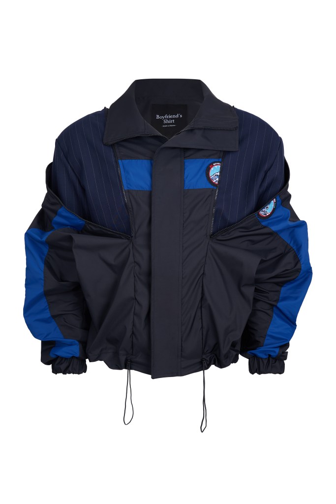 Boyfriend’s Shirt reinterpreta el clásico impermeable con una mirada contemporánea: siluetas deconstruidas, estructuras versátiles y un enfoque en tonos azules y negros que desafían lo convencional.