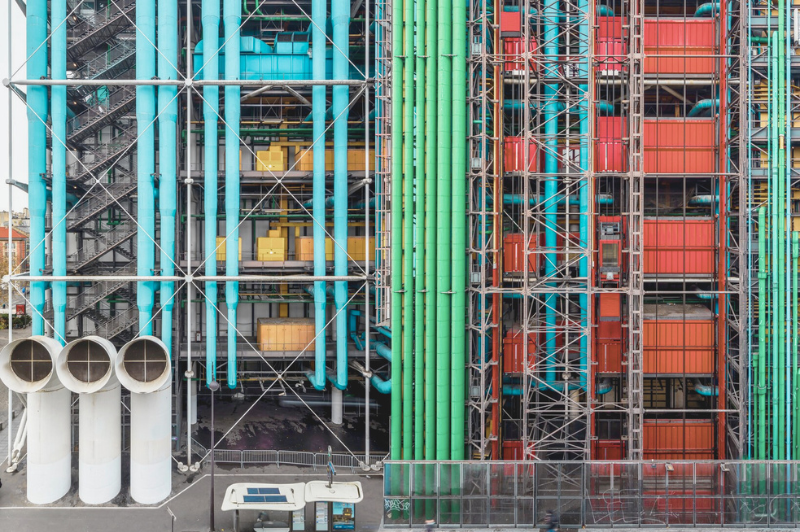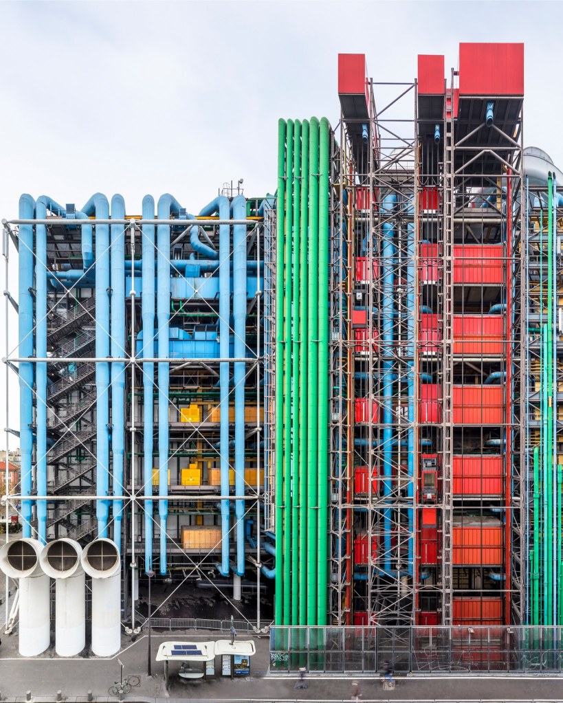Su diseño «al revés», con tuberías, escaleras, ascensores y conductos expuestos, convirtió la infraestructura en parte del arte.