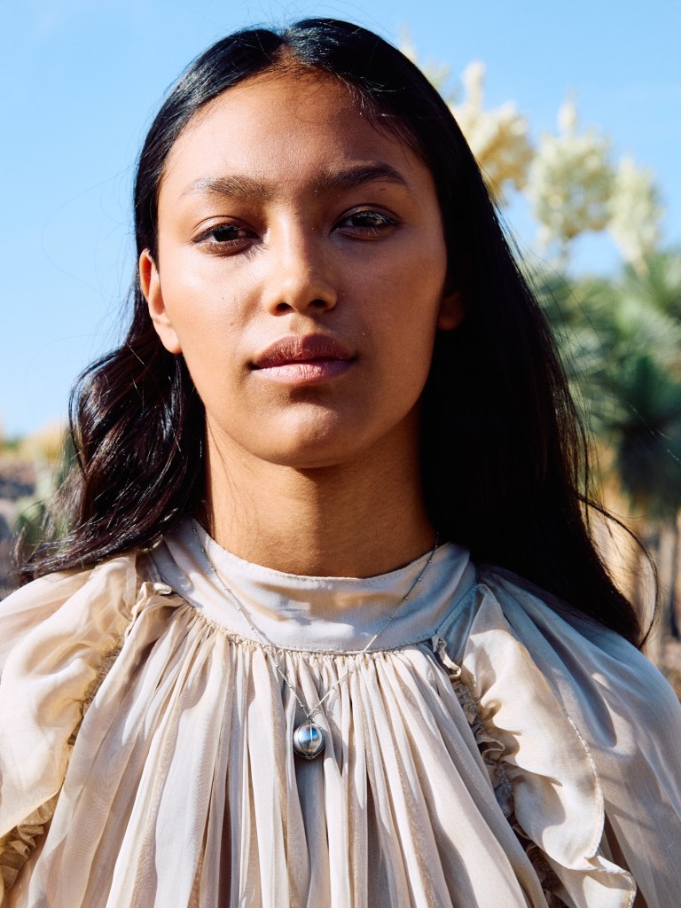Cashmere y piel de nopal, algodón y latón, tintes endémicos y fibras experimentales convergen en piezas que son a la vez arraigadas e inquietas. Evocan la fragilidad de la memoria, la resiliencia de la tradición y la posibilidad de crear belleza desde la transitoriedad.