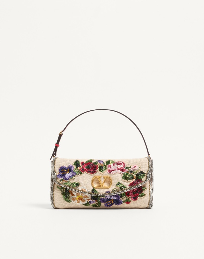 Objeto multifacético de deseo, el DeVain se expresa a través de una rica variedad de versiones: modelos monocromáticos en piel nappa o nappa metálica conviven con el encanto desenfadado del denim; el atractivo artesanal del rafia tejido se encuentra con la opulencia del shearling adornado con strass multicolor. Pieles preciosas, bordados con hilo y cuentas, y combinaciones románticas de guirnaldas y terciopelo amplían aún más su universo expresivo.