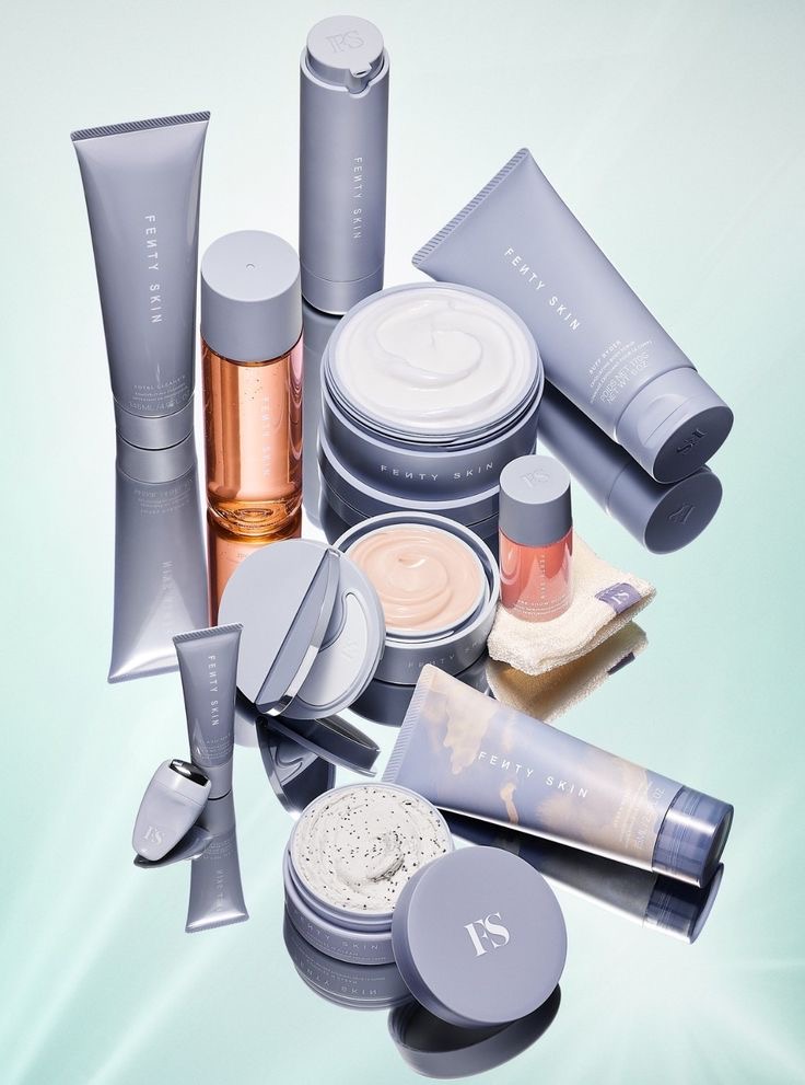 Bajo la premisa de un cuidado de la piel limpio, eficaz y universal, Fenty Skin está diseñada para todas las tonalidades y tipos de piel, transformando la rutina diaria en un ritual del cuidado sofisticado. La línea cuida rostro y cuerpo con fórmulas veganas, libres de aceite y sin gluten.