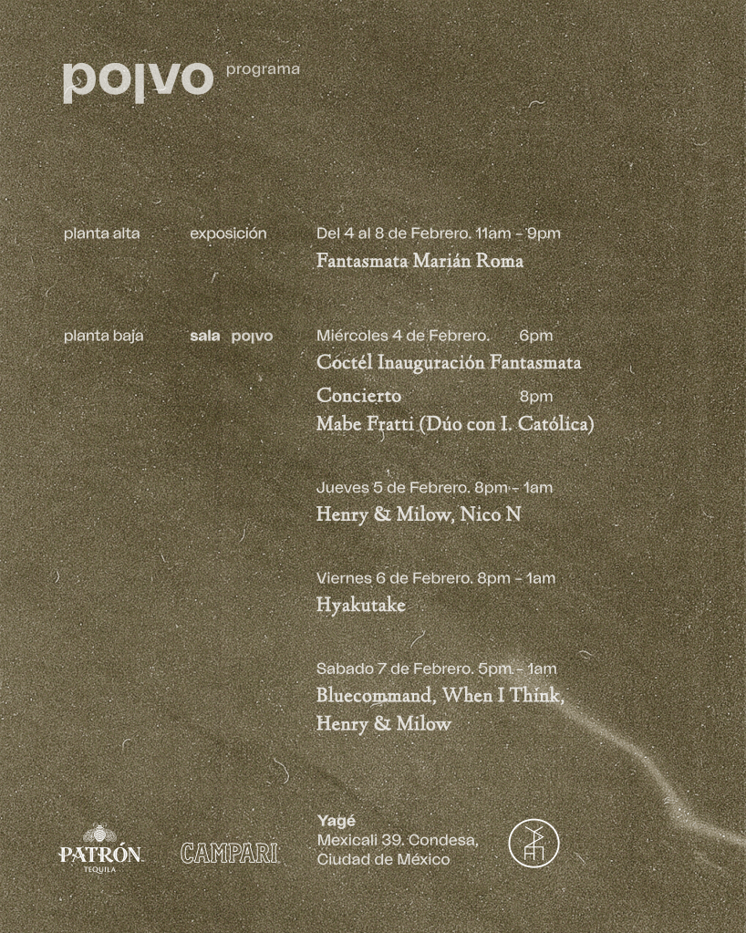 La muestra se inaugura el Miércoles 4 de febrero de 2026 en Yagé (La Cueva Urbana) ,un espacio multidisciplinario donde la gastronomía, el arte y la música convergen con lo desconocido y lo atemporal, ubicado en la Colonia Condesa.