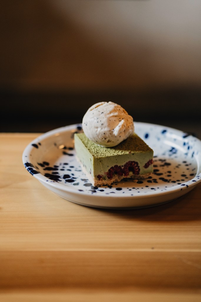 Incluso en platos aparentemente más simples, como el harumaki veggie, hay intención.Y para cerrar, el pie de matcha con frambuesa y helado de leche funciona como un final delicado, equilibrado y memorable.