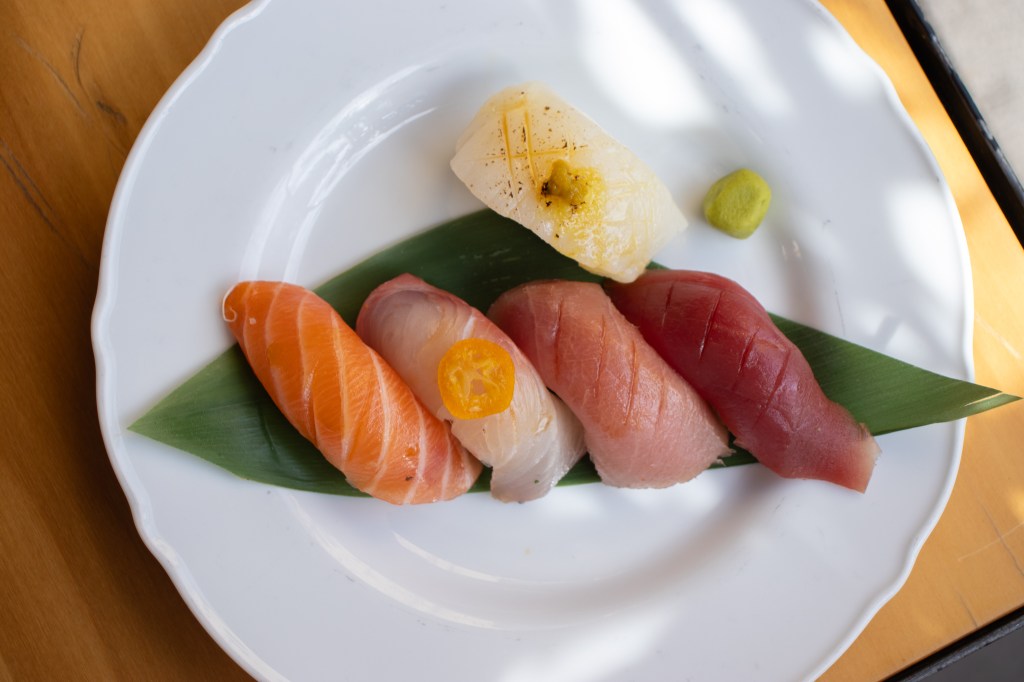 El aburi hamachi roll es otro de esos imprescindibles que no empalagan ni abruman; el flameado justo realza la grasa natural del pescado y deja una sensación tibia, elegante. Y cuando llegan los contrastes más marcados, como el tiradito de kampachi con yuzu kosho, el paladar agradece esa mezcla entre lo cítrico, lo fresco y un picor sutil que aparece al final, casi como un recordatorio.