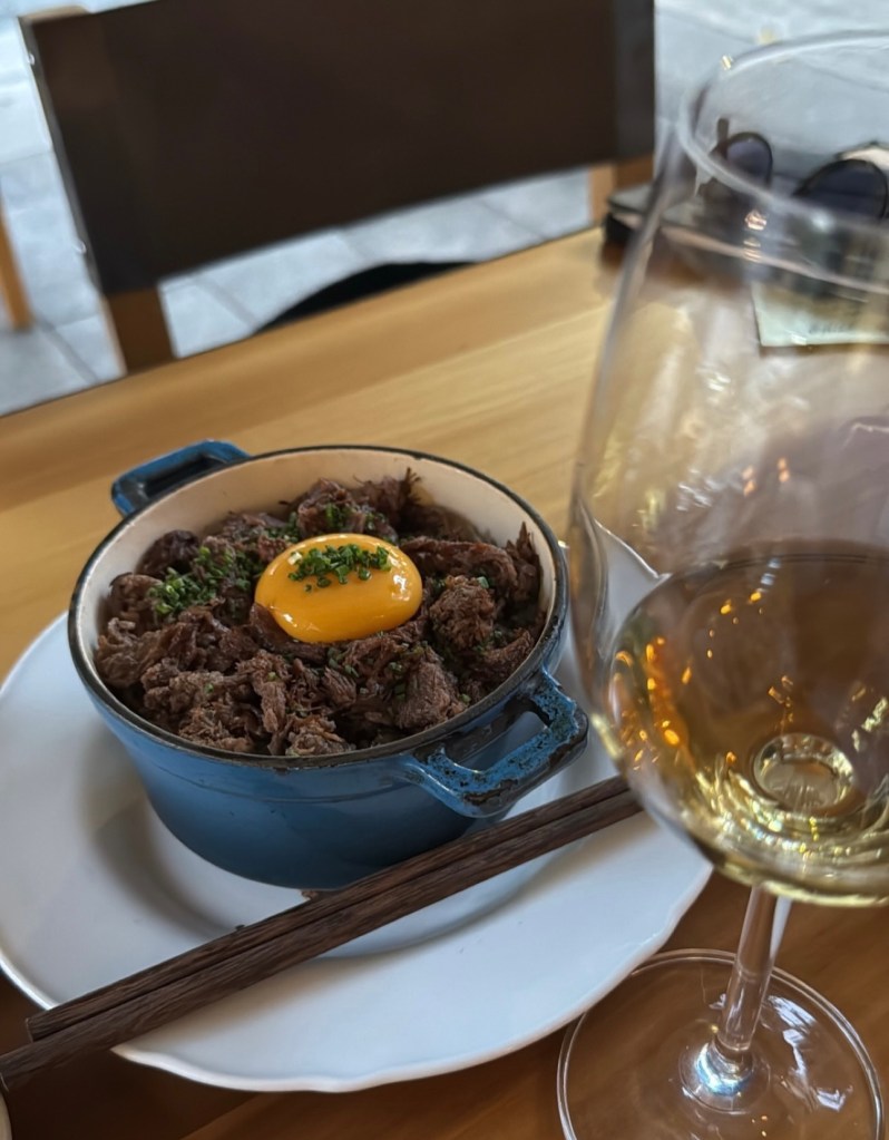 Empiezo casi siempre por los nigiris del día, porque ahí se entiende todo. El arroz está en su punto, el pescado se siente limpio, preciso, y el conjunto habla de técnica sin necesidad de explicarla. Luego aparece uno de esos platos que se quedan grabados: el shari con wagyu y yema curada, una sola cucharada que condensa cremosidad, profundidad y un balance perfecto entre confort y sofisticación.