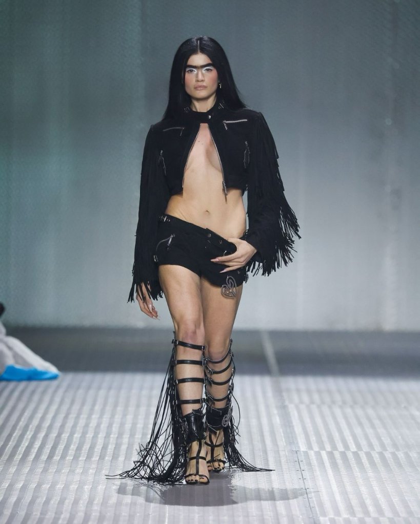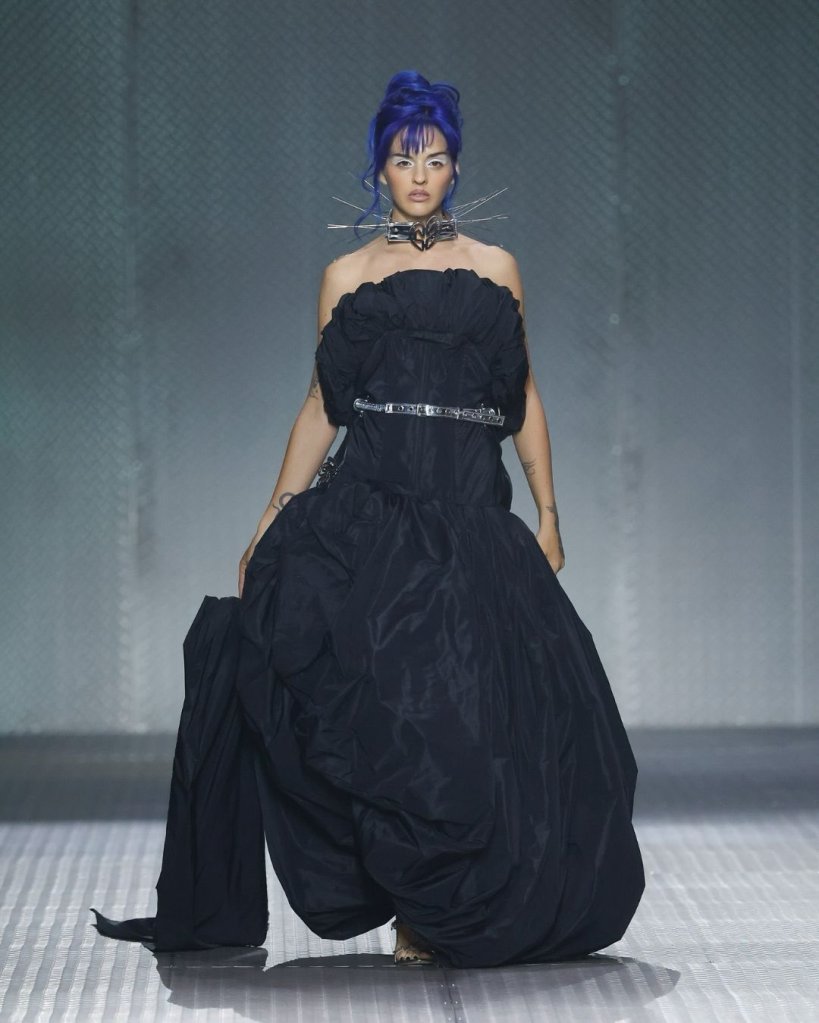 A su lado, marcas como Escorpion y SKFK refuerzan un eje clave: la comodidad como statement político. Punto, materiales responsables y siluetas que fluyen con el cuerpo. Pero lo relevante no es su presencia, sino el contraste que generan.