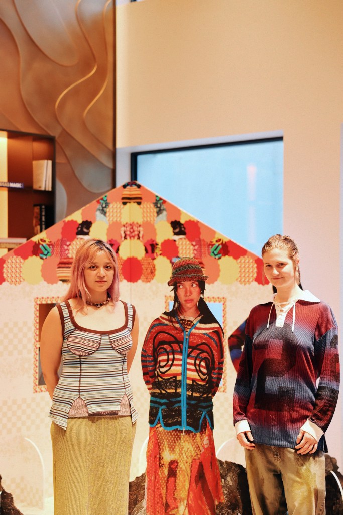 Una casa a escala real irrumpe en el lobby. No es escenografía, es manifiesto. Desde ahí, la colección SS26 se despliega como un ejercicio de memoria intervenida: libros para colorear que crecieron, nostalgia que aprendió a diseñarse a sí misma. Las “muñecas”, figuras humanas detenidas entre objeto y sujeto, activan el espacio como si fueran fragmentos de un recuerdo que insiste en materializarse.