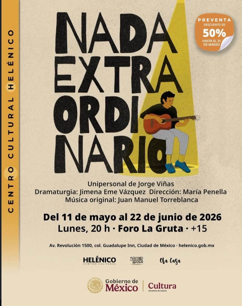 Me gustaría seguirme explorando como creadora, asumir esa responsabilidad global de un proyecto, poder involucrarme en todo desde su concepción. Empiezo a intuir que eso solo va a ser posible con un proyecto súper personal y eso me da un poco de nervios. Por ahora «Nada Extraordinario» va a estar en la gruta del Helénico, los lunes a partir del 11 de mayo, en donde yo estuve a cargo de la dirección.